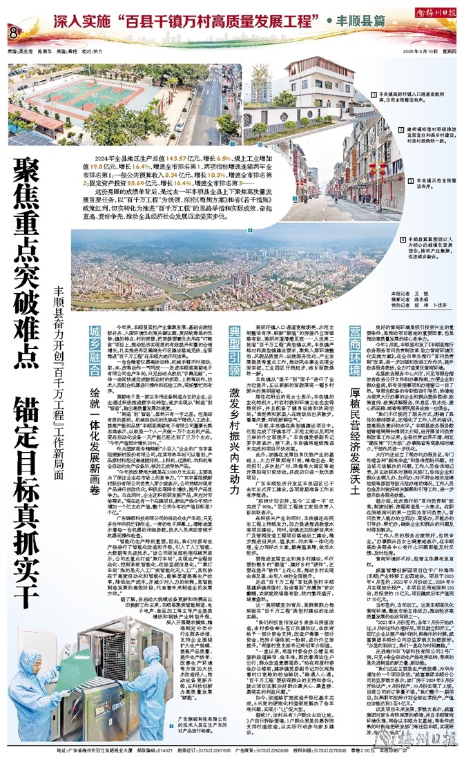 这份亮眼的成绩单背后,是过去一年丰顺县全县上下聚焦高质量发展首要任务,以“百千万工程”为统领,深挖《梅州方案》和省《若干措施》政策红利,切实转化为推进“百千万工程”的思路举措和实际成效,奋起直追、竞标争先,推动全县经济社会发展迈出坚实步伐。