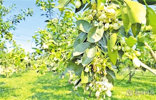 五华县河东镇有“果蔬之乡”的美誉,全镇种植沙田柚、龙眼、青枣、荔枝等优质水果,品种众多。每到春天,各种果树次第开花,整个果园香飘十里,而最让人心醉的还是增塘村的茶亭岗柚子花。