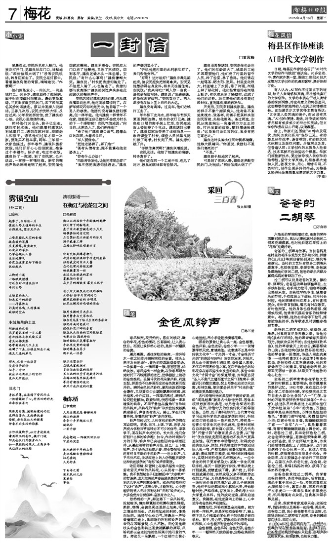 老爸的二胡琴常常会在学校文艺汇演的时候派上重要用场,也珍藏着我的美好记忆。1982年春,我在里江小学读小学二年级的时候,学校要挑选文艺节目赴大都公社参加“六一”汇演,当时的万春玉老师负责组织排练《一片心意》,挑选队员时我被选上在剧中担任了放牛娃弟弟“小华”的角色,万碧红在剧中是母亲的角色,万靖兰是姐姐的角色。“喜鹊门前叫喳喳,彩霞姐姐叫小华;回家分吃生日蛋,我蹦蹦跳跳回了家……”当年“六一”,我是戴着草帽、背着竹鞭蹦蹦跳跳跑上舞台的。那时,老爸拉二胡,英华老师也拉二胡,宏金老师吹横笛,恩群老师弹秦琴,柳安老师击鼓,思宁老师敲木鱼等,为我们的剧情推进配上了顶级乐队,这个剧目获得了全公社第一名。我读六年级的时候,获推荐参加五华县少代会。开会回来,在文葵镇各小学进行了巡回演讲。在里江大队的老礼堂,在会前,老爸拉二胡,我唱《妈妈的吻》,获得了全场热烈的掌声。