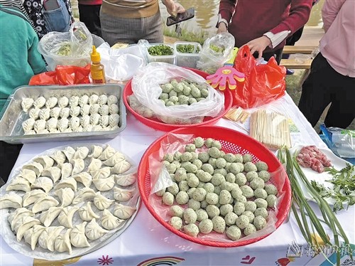 “这是我们马山村的特色美食——勺麦粄,对孕妇特别好,孕早期反应大的时候吃这个可以缓解,对肠胃也很有好处,一直以来都是我们马山村的传统青食。”来自马山村的王怡婷热情地向游客介绍她们村的特色产品,现场十分火爆。