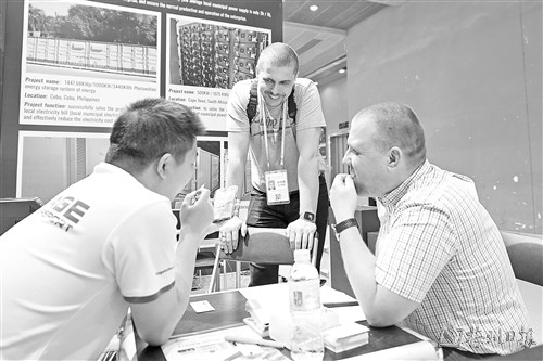 4月16日,客商在第137届广交会的新能源展区了解产品。