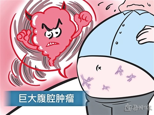 市人民医院胃肠外二科陈文局主任介绍,“当时患者的情况非常危急,由于腹腔内的肿瘤体积巨大而且已经破裂出血,腹腔内积满了鲜血。而患者的身体基础条件极差,手术风险极高,情况棘手,医疗团队全力以赴拯救生命。”