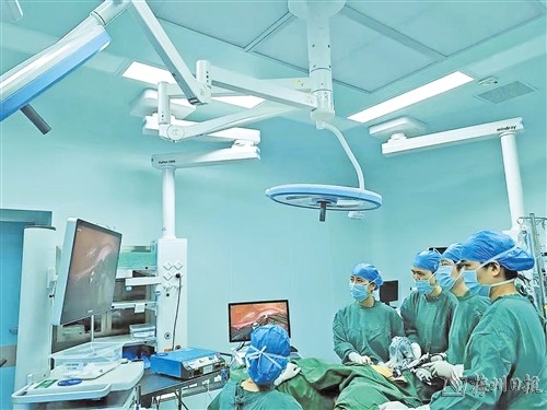 本报讯 近日,兴宁市人民医院妇产科团队在特聘专家何勉教授的引领下运用先进的高清荧光腹腔镜,为一名子宫内膜癌患者完成了“腹腔镜下全子宫切除+双侧附件切除+前哨淋巴结切除术”,实现了妇科肿瘤微创精准治疗,标志着医院妇科高质量发展又迈出了坚实的一步。