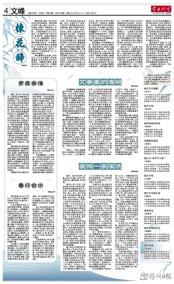 最先飘零的总是最上层的花朵,它们没有樱雪飞扬的柔情蜜意,也没有桃红逐水的沉溺哀伤。那飘洒的紫雾,就像是春天给大地留下的一首赠别辞:此后,将是绿肥红瘦,为什么呢?因为我曾经极致地含蓄。是的,苦楝花开不争春!它把开放与凋零都收敛在细小的褶皱里,像被风揉皱的信笺,片片、片片地向人挥手、挥手。初次恋上楝花,还是在高中时,宿舍窗户边也是有一株苦楝树的。每当清明前后,她便会幻出一树紫色的迷雾。年少的我,经常在黄昏之时,看她那婆娑树影与夕阳共舞,隔着窗棂与她一起接受春风最后的抚摸。那时的她奇幻而富有诗意,最能挑起少年朦胧的情愫,也最能勾起落花流水的惆怅。每一次凝望,我都会误以为那是划破绚丽而流落人间的仙子。风有信,花无误,逐着花开而来的风就叫花信风。风应花期而来,花守风信而开。《荆楚岁时说》有道:“始梅花,终楝花,凡二十四番花信风。”楝花风是最后一种花信风,古诗云:“梅子雨干还有雨,楝花风过更无风。”花事至此,春意阑珊。岭南的楝花与江南之楝是有所区别的,未及清明,各处楝花便吐蕊含丝,比书中记载的谷雨花期整整早了一个节气。难道岭南的春天消逝得更早吗?只是如今的我早已不再是当初的少年,也习惯了春花秋月的更替轮换,不复“为赋新词强说愁”。
