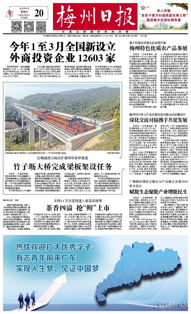 近日,记者在梅州市马图茶业有限公司生态茶园看到,一排排错落有致的茶树间,茶农穿梭其中,熟练地将鲜嫩的春芽收入篓中,呈现出一幅生机勃勃的春日画卷。