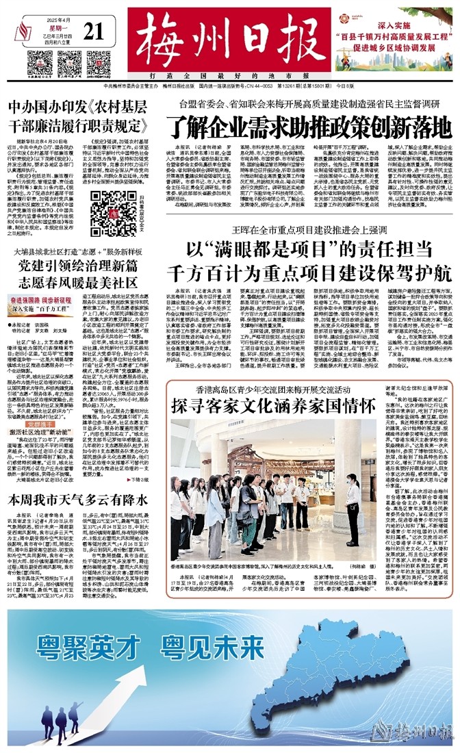 本报讯 (记者何梓瑜)4月17日至19日,由27名香港离岛区青少年组成的交流团来梅,开展客家文化交流活动。