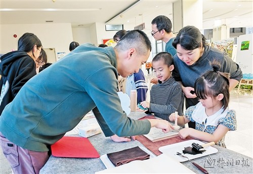 参加2024年度借阅达人颁奖仪式、体验趣味科普活动、感受书“签”物语创意DIY、观看书画作品展览……4月20日上午,“借阅达人”丰顺县砂田学校三年级学生范子超在家长陪同下,参加了丰富多彩的活动。“我们很重视孩子阅读能力的培养,几乎每周末都会带他来图书馆借书,也会参加相关活动,丰富孩子的课余生活。”家长范先生告诉记者。