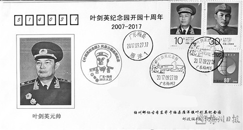 2017年是叶剑英元帅诞辰120周年,9月27日,梅州邮政举行叶剑英纪念园风景日戳启用仪式。