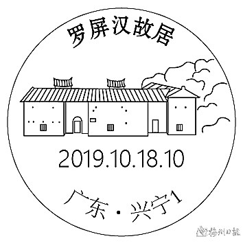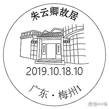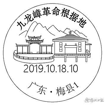 2019年10月18日,“壮丽七十年 阔步新时代”庆祝新中国成立70周年广东集邮文化巡回活动(梅州站)在兴宁城南邮政大楼开幕,梅州邮政特别启用8枚红色系列风景日戳。分别为:朱云卿故居(原地邮局:梅江区西门邮政支局,邮编:514000)、九龙嶂革命根据地(原地邮局:梅县区梅南邮政支局,邮编:514777)、罗屏汉故居(原地邮局:兴宁市大坪邮政支局,邮编:514533)、古大存故居(原地邮局:五华县梅林邮政支局,邮编:514445)、坚真纪念馆(原地邮局:丰顺县河滨邮政支局,邮编:514399)、中央红色交通线大埔中站(原地邮局:大埔县青溪邮政支局,邮编:514221)、东岭革命历史纪念馆(原地邮局:蕉岭县三圳邮政支局,邮编:514145)、平远红军纪念园(原地邮局:平远县仁居邮政支局,邮编:514621)。