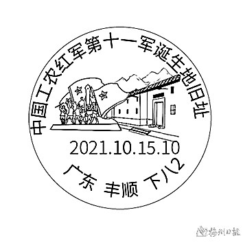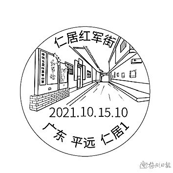 2021年10月15至17日,“梅州2021第14届广东省集邮展览”在梅州市世界客商中心举行,梅州邮政于首日“红色印记日”启用红色系列题材风景日戳4枚:同怀别墅(原地邮局:梅县区松源邮政支局,邮编:514749)、仁居红军街(原地邮局:平远县仁居邮政支局,514621)、中国工农红军第十一军诞生地旧址(原地邮局:丰顺县下八邮政支局,邮编:514336)、中共南方工作委员会旧址(原地邮局:大埔县枫朗邮政支局,邮编:514241)。