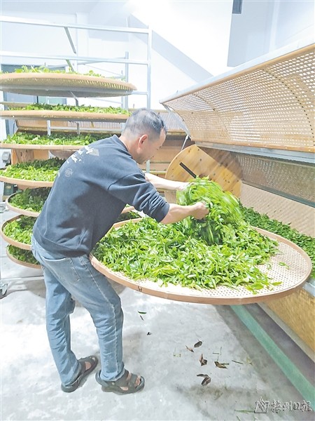 为确保茶叶的新鲜度,茶农们争分夺秒,把采摘下来的新鲜茶叶立即送往制茶车间。经过杀青、萎凋、摇青、半发酵、烘焙等一系列工序,原本嫩绿的茶叶逐渐成条索卷曲状,香气也愈发馥郁幽长。合作社采用“基地+农户+网络销售”的经营模式,凭借优异的品质,充分发挥新型农业的功能优势,让茶叶走向更广阔的市场。