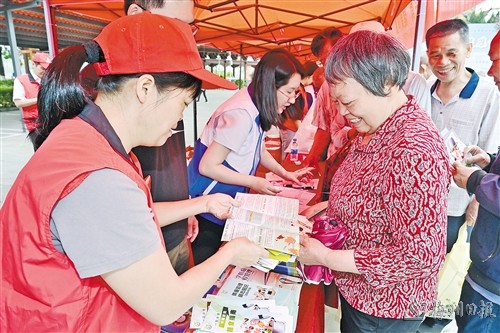 上午9时许,活动现场人头攒动,预防接种、职业健康、营养膳食、疟疾防控、体重管理、急救科普等主题展区和义诊区吸引不少市民前来咨询,并参与有奖问答和互动游戏。预防接种区通过疫苗接种指导,向家长普及儿童免疫规划政策等;职业健康区展示防护用品和佩戴方式,引导劳动者关注职业病防治;营养健康区以趣味膳食宝塔拼图游戏,生动传递科学饮食理念;疟疾防控区通过蚊虫标本观察,向市民科普疟疾传播途径和防蚊灭蚊方法;体重管理区结合跳绳、呼啦圈挑战,为市民提供BMI测量和科学减重指导;急救科普区通过AED(自动体外除颤器)设备演示,普及急救知识与技能;义诊区的专家团队为市民提供血压血糖检测、中医适宜技术体验和个性化健康指导服务。