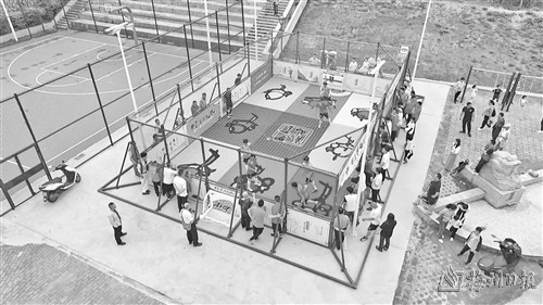 本次赛事采用“笼式三人制足球”模式,依托标准化彩色微足球场展开。比赛现场分为A、B两个赛区,同步进行三轮循环赛。可以看到,笼式球场占地96平方米,采用全封闭挡板及围网设计,配备高弹力人造草皮,紧凑的空间设计强化小范围传控技巧,规则限定“禁区内禁止射门”“点球采用脚后跟罚球”等,既降低参与门槛,又凸显团队协作的核心价值。以九宫格为创意的人造草皮上,八个形态各异的彩书“乐”字环绕其间,呈现“独乐乐不如众乐乐”的内涵,与围网挡板上的彩书诗词、典故,构建起“德育、美育、体育”三育并举的沉浸式足球空间。经过激烈角逐,最终平远大柘队拔得头筹,兴宁黄陂队紧随其后,平远大柘队罗勇浩、兴宁黄陂队刘梓铭分别获得最佳射手奖和最佳球员奖。