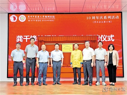 本报讯 (记者李盈子)4月24日上午,龚千锋传承工作室揭牌、学术思想传承拜师仪式暨梅州市中药炮制传承创新与中药质量控制培训班暨梅州市中西医结合学会药学专业委员会2025年年会在广州中医药大学梅州医院(梅州市中医医院、梅州市田家炳医院)举行。