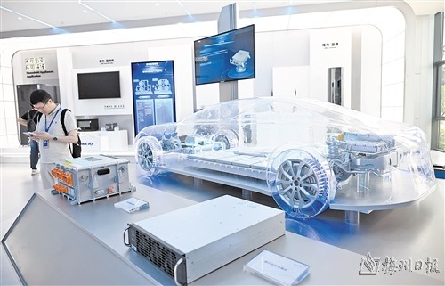 4月29日在珠海格力电子元器件有限公司拍摄的新能源汽车碳化硅充电模块、驱动电机控制器。