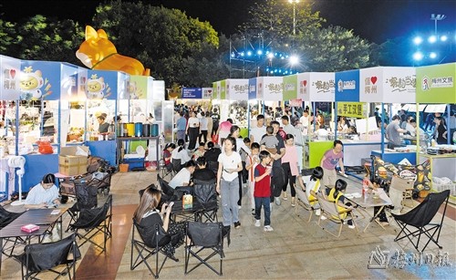 记者了解到,活动前期,梅州市文旅、商务、市场监管、农业农村等部门联合对全市特色餐饮、非遗小吃、老字号、土特产等传统技艺产品和文创产品及其代表性企业、个体等信息进行挖掘、收集,统一进行遴选,将富有客家特色元素的美食、文创、潮玩资源和充满时代气息的新生产品择优纳入扶持计划,引进了近百家优质商家推出潮玩集市区、非遗传承区、岭南美食区等板块,为市民游客提供可玩、可购、可拍、可学的互动体验场景。