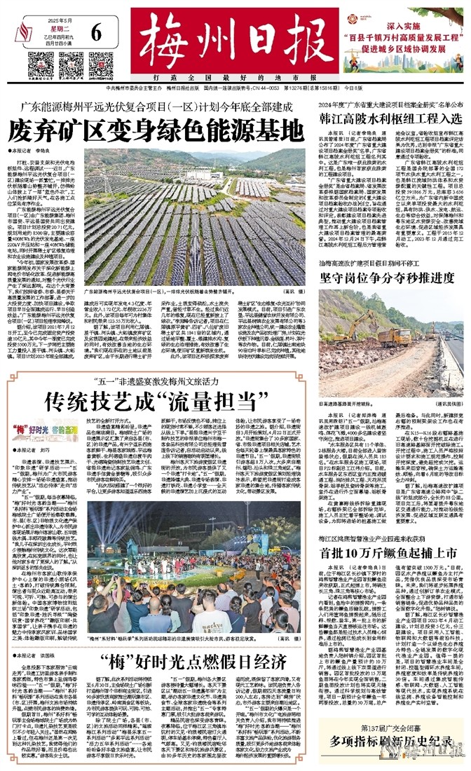 本报讯 (记者李艳良)日前,位于梅江区长沙镇下罗村的鸿熙智慧渔业产业园首批鳜鱼迎来收获期,正式起捕上市,将销往长三角、珠三角等核心市场。