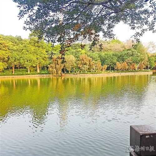 穿过智能锻炼场,经过种植有各种小花木的趣味植物园,来到了榕树下童乐园旁的“双砚湖”。我们沿着湖边翠林覆盖的蜿蜒曲径游赏。只见碧绿的湖面上,清晰地倒映着岸上的林木、蓝天和白云等。在阳光的照射下,湖水荡起了粼粼波光,一圈圈地向远方荡开。你还能看见有白色和黑色的鸭子在湖面上悠闲游行和嬉戏玩闹。密林道路中不时传来鸟雀悦耳动听的鸣叫声,给宁静的山间湖畔增添了不少热闹气氛。走至弯曲小径中间处,有一堵类似石墙般的拦截水泥石块,把湖水拦截成两部分。上下两边的湖水有高低之分,不是在同一水平线上。“双砚湖”也许这就是缘由吧。