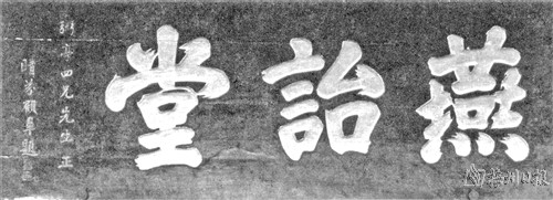 “燕诒堂”匾额由嘉庆六年(1801)状元顾皋题写,楷书字体厚重质朴,落款“晴芬顾皋题”。“燕诒”出自《诗经》,寓意先祖德泽绵延。燕诒堂的楹联体系丰富且内涵深刻:翰林王利亨所题“室作万间此怀斯足放千古,会修九老其右尤能坐一人”,行书笔力雄强,融合碑帖风格,“九老会”既关联白居易的洛阳雅集,又暗指徐氏家族精英网络,王利亨此联曾入编清吴恭亨著《对联话》,一时传为佳话;进士徐旭曾的“室近圣居应占文凤,宅瞻乾象定衍石麟”,楷书精雅,充满文气;状元顾皋书写的“文章尔雅训词深厚,事理通达心气和平”,瘦劲有力,清峻端方;知县刘道源的“积厚流芳菑畲经训,怀文抱质砥砺廉隅”,行楷相济、法度严谨,其中,“菑畬经训”化用韩愈诗句,强调耕读传家,“砥砺廉隅”源自《礼记》,彰显修身齐家的道理。