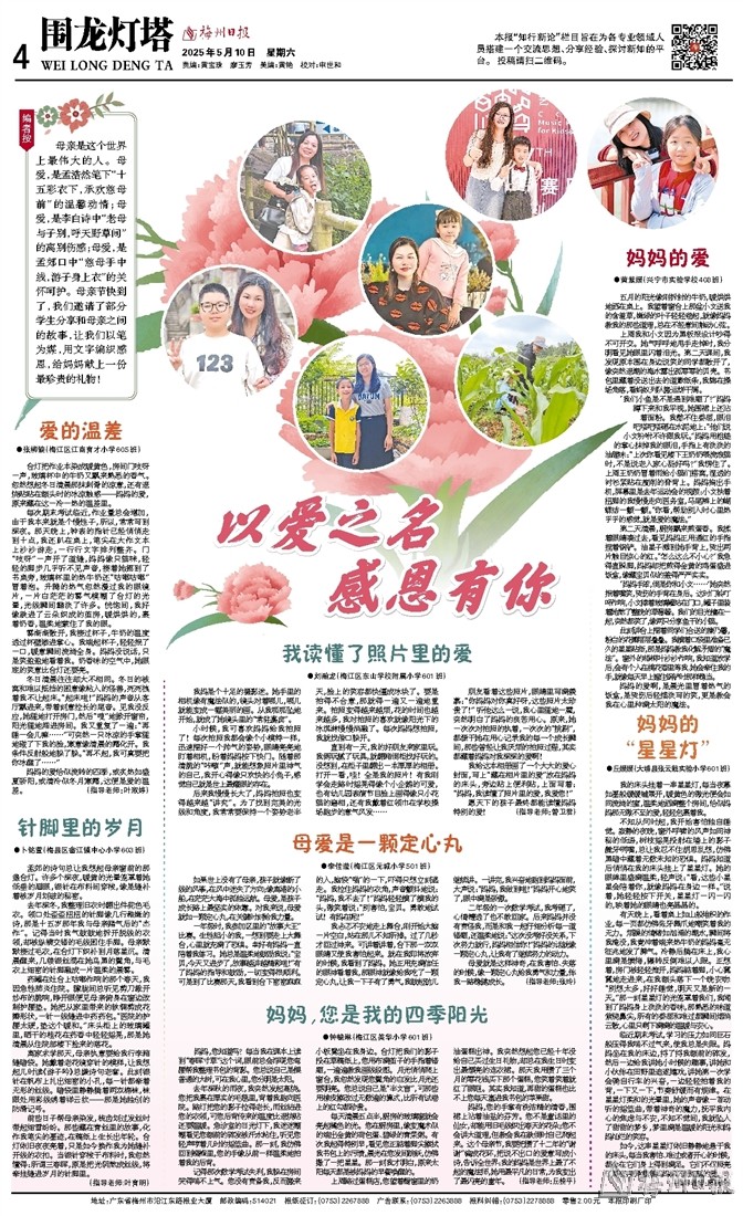 母亲是这个世界上最伟大的人。母爱,是孟浩然笔下“十五彩衣下,承欢慈母前”的温馨动情;母爱,是李白诗中“老母与子别,呼天野草间”的离别伤感;母爱,是孟郊口中“慈母手中线,游子身上衣”的关怀呵护。母亲节快到了,我们邀请了部分学生分享和母亲之间的故事,让我们以笔为媒,用文字编织感恩,给妈妈献上一份最珍贵的礼物!