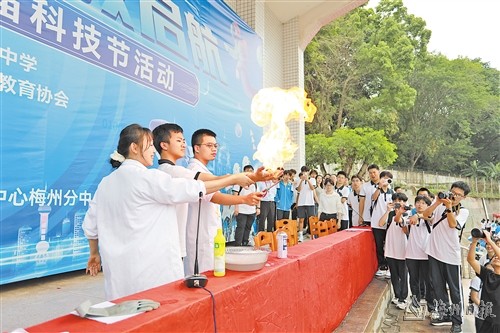 本报讯 (记者吴丽伶 通讯员李碧光 温锡良)4月27日下午,“数字高级 科教启航”梅县区高级中学首届科技节活动在该校体育场举行,初一年级、初二年级、高一年级学生、班主任及相关学科老师、实践指导老师共2000多人参加。
