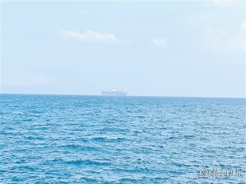 眺望大海深处,一个庞然大物在海上漂浮,装着满满七彩积木般的集装箱,中间高高隆起,两边微微倾斜。大家一开始以为它是静止不动的,目不转睛地盯着看了几分钟,它似乎在缓缓移动。“不是,那是大船哦!载着很多货物。”小女孩嘴角一咧,眼眸亮晶晶的,痴望着这“钢铁鲸鱼”游向天际。