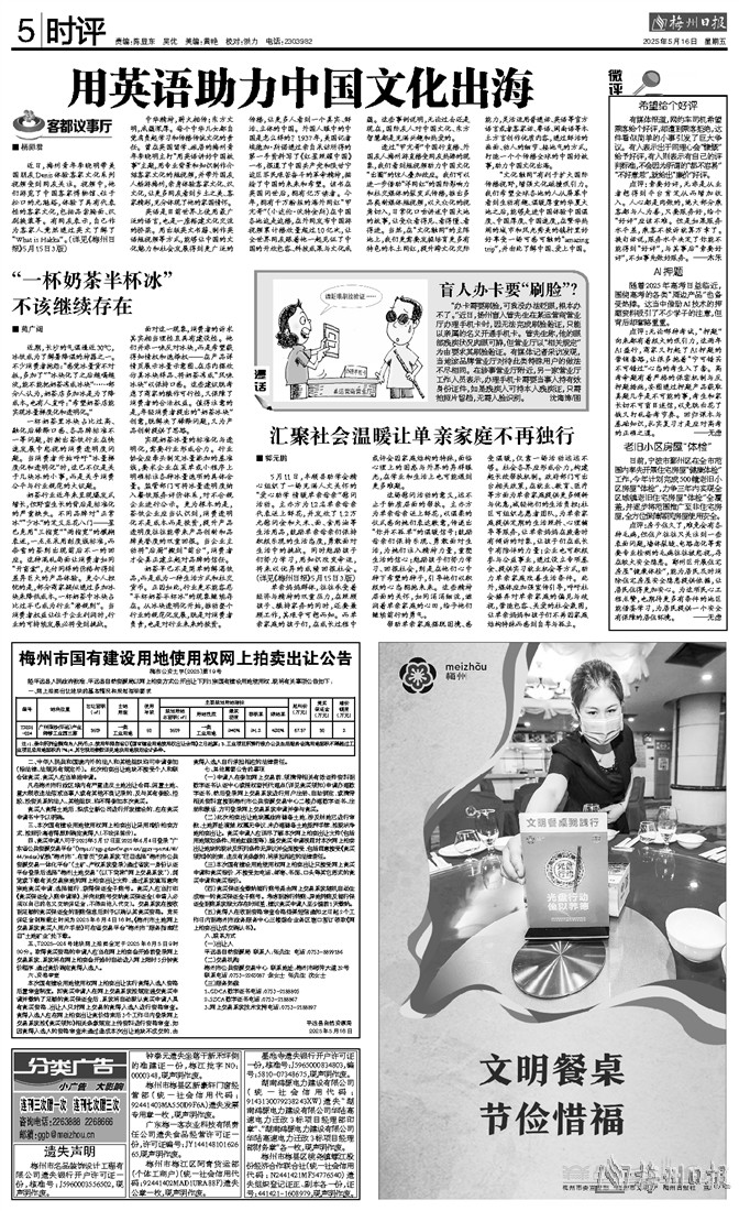 近日,梅州青年李晓明带美国朋友Denis体验客家文化系列视频受到网友关注。视频中,他们游览了中国客家博物馆、位于松口的元魁塔,体验了具有代表性的客家文化,包括品尝腌面、汉剧换装等。有网友表示,自己作为客家人竟然通过英文了解了“What is Hakka”。(详见《梅州日报》5月15日3版)
