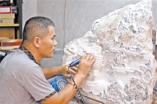 “创作作品除了需要精湛的雕琢技能,还需要独特的规划立意和传承。”当记者见到徐代铭时,他正在给学徒们具体地解说石雕作品的创作常识及窍门。他精心浇灌石雕技艺的幼苗,毫无保留地将自己多年积累的经验和技巧传授给年轻一代,并积极组织业内人士参加各类雕刻艺术研修班,推广新型雕刻技艺。在他的悉心教导下,张金鹏、徐龙等一批学徒踏上了石雕之路。