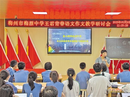 本报讯 (记者李盈子)5月10日上午,梅州市梅雁中学举行王君青春语文作文教学专题研讨会,邀请清华大学附中语文特级教师、青春语文研究者王君老师团队分享教学经验,通过“示范课+微讲座+交流研讨”模式,为初中语文教师搭建专业成长平台,吸引了我市及外省市共236位教师参加线下学习,通过线上直播吸引4.2万人次在线观课。