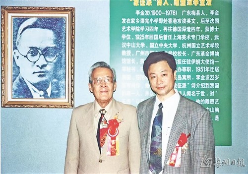 20世纪80年代初期,我在嘉应学院中文系任教,对李金发等近现代以来的梅州籍文化名人的研究有浓厚的兴趣。刚巧我的岳父吴铮先生是李金发夫人梁智因女士的中学同学,通过岳父与梁智因取得联系,她及她儿子李猛省给我寄赠了李金发的有关资料,让我了解到不少李金发晚年鲜为人知的情况。2000年,我会同时任梅州市政协主席何万真先生等人,发起组织召开了“林风眠李金发诞辰100周年纪念暨学术研讨会”,来自海内外六十多位专家学者莅临梅县、齐聚一堂,共同研讨林风眠、李金发两位文化名人。会后,我陪同谢冕、孙玉石、黄修已、李明心等人专程到梅南镇罗田径上村瞻仰李金发故居。李明心时任美国夏威夷大学教授。其间他与我交流甚多,突出地谈到了父亲热爱故乡和族人的情感,令我印象深刻。在李明心印象中,父亲是一个好爸爸,基于客家文化的传统,时常告诫这位混血儿子要学好中文、英文和算术,尤其要学好中文。至今李明心还保存其父1938年8月7日给他写的劝学铭:“明心日记——须牢记:1、每日记录二百字,以资练习,影响将来不浅!2、勿懒惰攻读中文,致将来成不通之中国人!……”