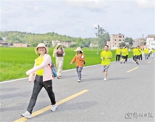 上午8时,随着一声清脆的鸣枪声响彻全场,徒步活动正式开启。本次活动路线全程约16公里,从五华县热矿泥温泉度假村出发,途经转水镇“百千万工程”示范主街、圩镇客厅、汉光超顺基地等标志性地点,最后返回热矿泥温泉度假村。活动还在五华县奥体中心李惠堂雕像处设置了特别打卡点。一路上,青山绿水相伴,乡村美景如画,参与者们在挑战自身、欣赏自然风光的同时,也深切感受到了“百千万工程”给当地带来的变化。
