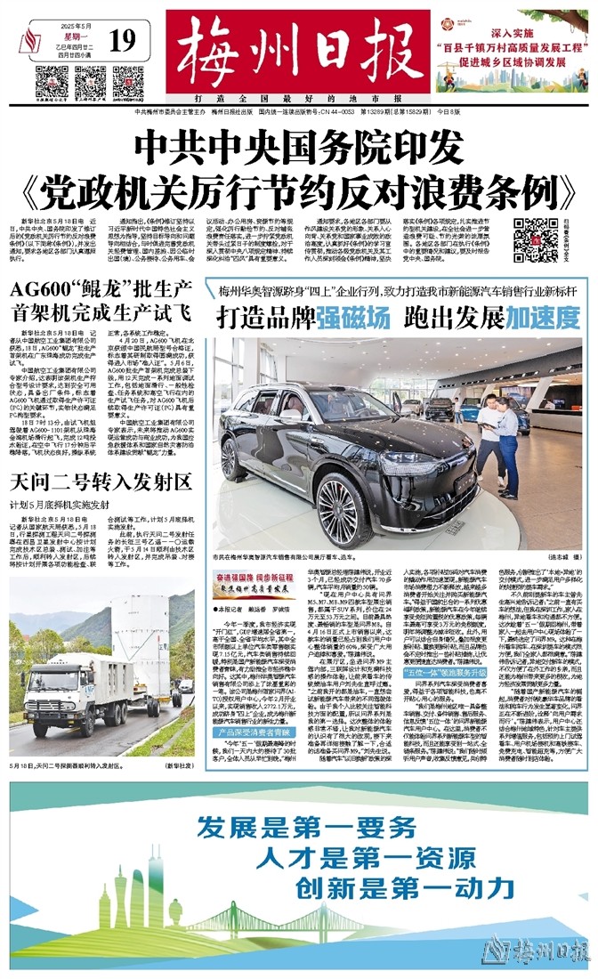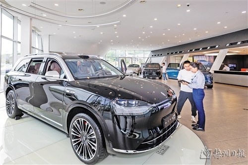 不久前刚提新车的车主曾先生高兴地告诉记者:“之前一直有买车的想法,但我在深圳工作,家人在梅州,异地看车和沟通都不方便。这次趁着‘五一’假期回梅州,带着家人一起去用户中心现场体验了一下,最终选定了问界M9。这种在梅州看车购车、在深圳提车的模式很方便,我们全家人都很满意。”陈建伟告诉记者,异地交付新车的模式,不仅方便了在外工作的乡亲,而且还能为梅州带来更多的税收,为地方经济发展贡献更多力量。