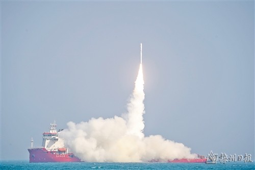 5月19日15时38分,我国太原卫星发射中心在山东附近海域成功发射谷神星一号海射型遥五运载火箭,搭载发射的天启星座05组卫星顺利进入预定轨道,飞行试验任务获得圆满成功。(新华社发)