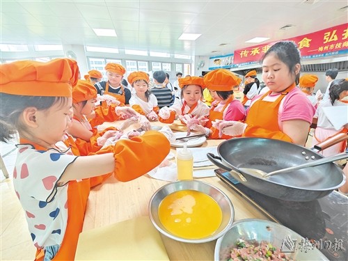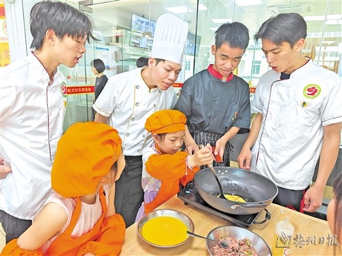 本报讯 (记者刘润涛)5月10日,梅州日报小记者走进梅州市技师学院烹饪实训基地,亲手制作客家传统名菜盐焗鹌鹑和客家酿蛋,开启了“客家菜小师傅”的味觉与文化探索之旅。
