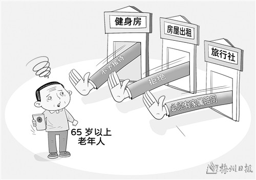 想办健身卡时被告知“不予接待”,租房时屡遭拒绝,想旅游被旅行团拒接或要求必须有家属陪同……65岁以上老年人常常在各种消费场景中遭到拒绝。一些商家不愿意服务65岁以上的老年群体,是因为对可能面临的风险顾虑颇多,担心老人出现突发状况,让自己担责……但因为年龄就拒绝服务或交易,不仅是“年龄歧视”,也不利于发展银发经济、激发消费市场活力。(朱慧卿/图)
