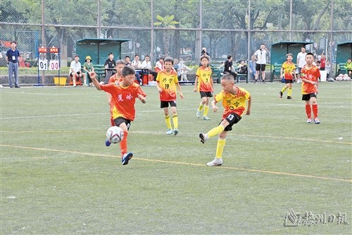 本报讯 (记者陈思杰)5月24日,梅州市“跃速杯”第十届运动会首个竞赛项目——青少年足球E组比赛,率先在兴宁市香港赛马会球场鸣哨开赛,来自全市各县(市、区)的12支青少年足球队齐聚绿茵场,展开激烈角逐。