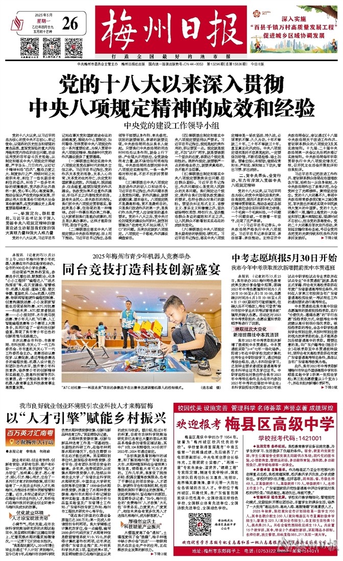 本报讯 (记者刘巧)5月25日,我市举办2025梅州特色教育成果交流分享会暨中招展,明确2025年中考志愿填报时间为5月30日10∶00至6月3日10∶00,志愿确认时间为6月3日10∶00至6月4日17∶00(期间仍可继续填报,但确认后不可修改),考生可登录“梅州市初中学业水平考试管理系统”填报并确认志愿。活动还对2025年中考录取批次、志愿设置和录取顺序等进行了说明。