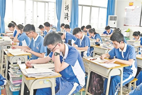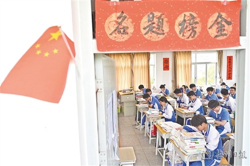 高三年级教室,浓浓的备考气息扑面而来。学生们埋头诵读、伏案疾书,课桌上堆叠如山的试卷和复习资料,见证着他们的努力。课堂上,老师们尽心尽力为学生答疑解惑、查缺补漏,学生们凝神倾听老师讲解题目、重温知识点;课间时分,有人与同学低声探讨数理化难题,有人背诵英语单词、语文古诗词等,大家都以饱满的精神、昂扬的斗志,争分夺秒,全力备考。教室后方,“金榜题名”“纵有疾风起,人生不言弃”等手写誓言贴满了“目标墙”,一笔一划,书写着对梦想的承诺,一字一句,凝聚着对未来的期许。