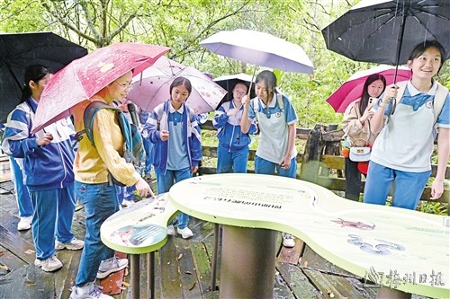 据了解,作为广东省自然教育基地,阴那山自然保护区近年来依托丰富的生物多样性资源,打造了总长1.8千米的集科普、研学、生态体验于一体的自然教育径,设置科普展板和互动展项,很多珍稀动植物知识都可以在这条教育径上找到。学生们不仅可以在这个“天然氧吧”里学习生物多样性知识,还可以化身为“实习巡林员”,揭开保护区的神秘面纱。“我们希望将保护区建设成没有围墙的生态学校。”阴那山自然保护区相关负责人表示,未来保护区将探索“研学+文旅”融合模式,让更多人在亲近自然中读懂生态文明的真谛。