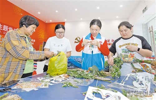 5月28日,端午“耆”乐,关爱“耆”行——端午节主题活动在梅江区江南街道红光社区开展。活动中,红光社区贴心地准备了艾草、菖蒲、黄葛藤等草药,以及端午主题的挂饰、贴纸等DIY材料包。在社工和志愿者的引导下,社区长者和居民们纷纷动起手来制作端午节艾草挂饰,并相互交流、展示自己的劳动成果。“每年端午节我都会到市场买一把艾草挂在家里的门楣上,有驱蚊的功效,也寄托了家人四季平安顺遂的美好祝愿。今年社区为我们准备好了材料自己动手制作,大家一起开心地迎接端午节的到来,参与感也更强了。”红光社区居民汤秋香说道。