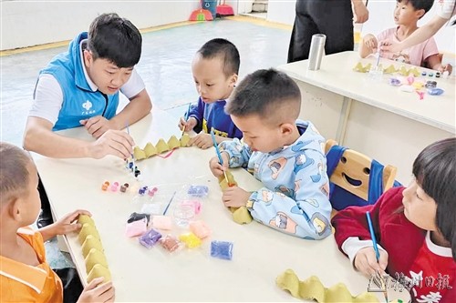 5月28日,大埔县枫朗社工站联合相关单位到广德幼儿园开展“品味端午 传承文明”主题关爱活动,让孩子们深入了解端午节的文化内涵,增强对传统文化的认同感和自豪感。活动期间,社工通过动画视频、知识竞答等形式,让孩子们深入了解端午节的历史渊源、民俗习惯,弘扬中华优秀传统文化。随后,孩子们充分发挥想象力和创造力,用鸡蛋托、颜料和牙签等材料DIY制作龙舟船,并在龙舟上画上精美的图案,一艘艘小巧精致、千姿百态的手工制作“迷你”龙舟船很快成型,童趣满满。