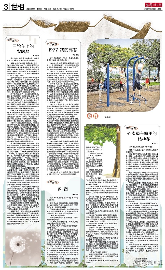 曾姨把最后一捆纸壳扔上车,拿绑带固定好,矫健地踩着三轮车离开了。“收废品啦,收废品啦”,我听到她那熟悉的吆喝声从远处传来,声音在城市的傍晚像风一样飘扬开去,又像蒲公英一样飞散开又飘落在人的心里。西边的云霞正烧得滚烫,一人、一车,披着霞光坚定地驶向前方……