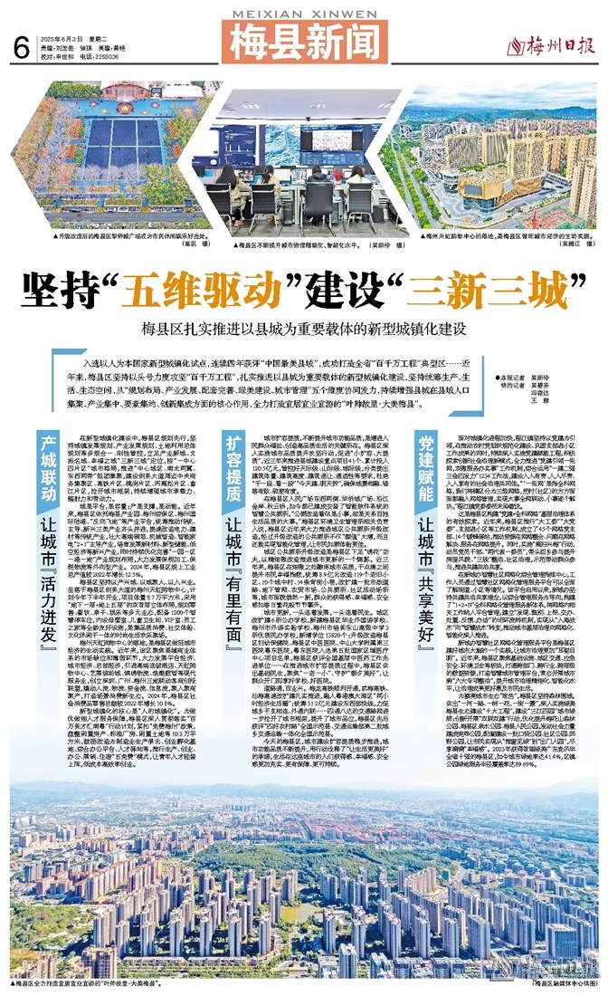 入选以人为本国家新型城镇化试点,连续四年获评“中国最美县域”,成功打造全省“百千万工程”典型区……近年来,梅县区坚持以头号力度攻坚“百千万工程”,扎实推进以县城为重要载体的新型城镇化建设,坚持统筹生产、生活、生态空间,从“规划布局、产业发展、配套完善、绿美建设、城市管理”五个维度协同发力,持续增强县城在县域人口集聚、产业集中、要素集约、创新集成方面的核心作用,全力打造宜居宜业宜游的“叶帅故里·大美梅县”。