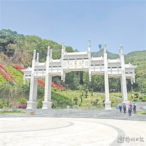 来到北大门口,只见一座高大气派的牌坊门楼矗立在眼前,门楼是用洁白的大理石砌起。大门顶上刻写着“梧桐山”,大门对联由著名书法家孙晓云执笔书写:千寻梧岭霞蔚云蒸长真引凤,万顷烟波风生水起正好抟鹏。我想,也许这是对梧桐山的真实写照吧!门旁还有一块黄色巨石刻写“看梧桐山赋”,让我们能了解到它的前世今生。