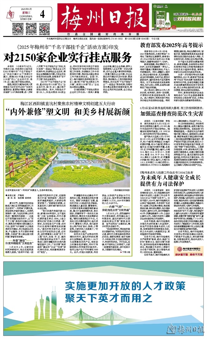 白皮书介绍,梅州市检察机关积极投身“百千万工程”,将关爱留守儿童作为未成年人司法保护的重要课题,部署开展“扬帆护童”留守儿童保护专项行动,深度融入“1+6+N”社会治安综合治理工作体系建设,建立未成年人“围屋家访”工作机制,实施法治教育覆盖倍增计划,以法治力量助力补强家庭监护缺失短板。
