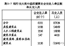 建筑业企业法人单位从业人员中,房屋建筑业占62.6%,土木工程建筑业占19.3%,建筑安装业占5.0%,建筑装饰、装修和其他建筑业占13.1%(详见表3-7)。