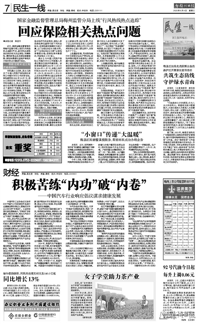 近日,国家金融监督管理总局梅州监管分局上线《行风热线热点追踪》节目,就市民此前咨询反映的有关农业保险、车辆保险、惠民保等业务及保险销售理赔、保险消费者权益保护等相关方面的热点问题进行回应。