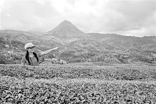 汽车沿着山路盘旋而上,车鸣声打破了山间寂静。路旁一垄垄的茶树蜿蜒起伏,偶尔可见有三两村姑在采撷,手在茶叶间轻盈跳跃,如同蝴蝶穿花,不时还向过往车辆挥挥手。