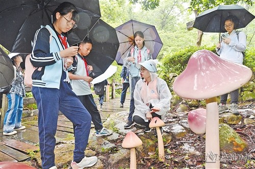 据了解,作为广东省自然教育基地,阴那山保护区近年来依托丰富的生物多样性资源,打造了这条总长1.8km集科普、研学、生态体验于一体的自然教育径。教育径以70多个动植物科普展板为载体串联起丰富的生态知识,系统讲述阴那山生态故事,学生们不仅可以在这个“天然氧吧”里学习生物多样性,还可以化身为“实习巡林员”,去探访揭秘保护区的神秘面纱。“我们希望将保护区建设成没有围墙的生态学校。”保护区相关负责人表示,未来保护区将探索“研学+文旅”融合模式,让更多人在亲近自然中读懂生态文明的真谛。