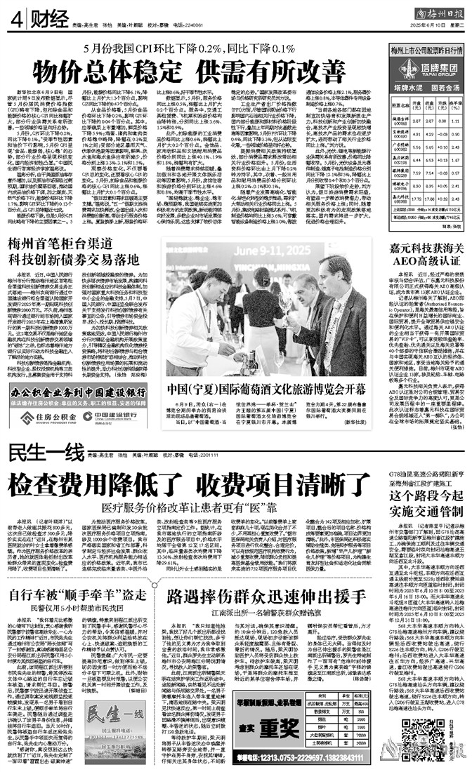 5月份,CPI环比下降0.2%,同比下降0.1%。“受季节性因素和油价下行影响,5月份CPI呈现‘食品、能源弱,核心稳’的态势,部分行业价格呈现积极变化,国内经济韧性凸显。”中国民生银行首席经济学家温彬说。